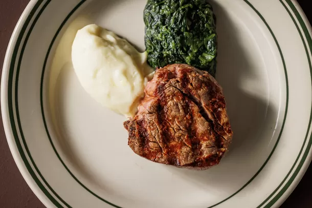 (2) フィレミニョン(お一人様約180g)、マッシュポテト、スピナッチ