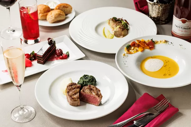 シーフードプラッターで華やかにスタート、旬のバタースクワッシュを使ったスープ、メインは最低28日間熟成 USDAプライムビーフ フィレミニョン、またはポーターハウスの2種をご用意しました。クリスマスにベンジャミンステーキハウスでプライムビーフと、アメリカンな雰囲気でのお食事はいかがでしょうか。特別な時間をご家族や大切な人とお過ごしください。