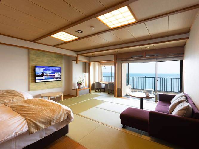 この度当社が運営を担う「湯喜望 白扇」は、1955年に8室の割烹旅館として創業した歴史ある温泉旅館です。1999年には全面リニューアルが実施され、現在はオーシャンビューや露天風呂付客室など7タイプ全33室のお部屋を有し、境港の新鮮魚介や大山の自然の恵みを取り入れた料理、良質な温泉を皆様にお届けしています。
