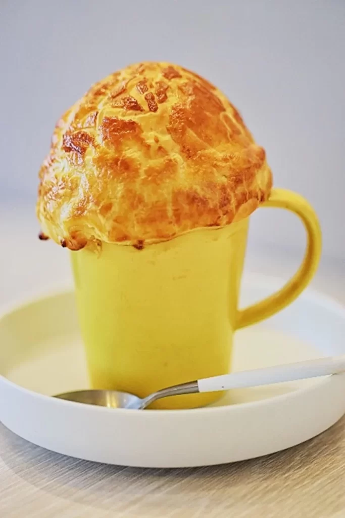 サクサクパイをスープに浸してお召し上がりください。