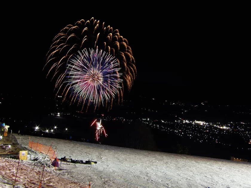 福島・耶麻郡「いなわしろ雪花火開催!磐梯山と『共演』ゲレンデ雪花火」