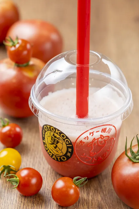 埼玉県桶川市の自慢のブランドトマト「男気トマト」をまるごと1個使用した、新メニュー第2弾の「トマトスムージー」が、道の駅べに花の郷おけがわに登場!