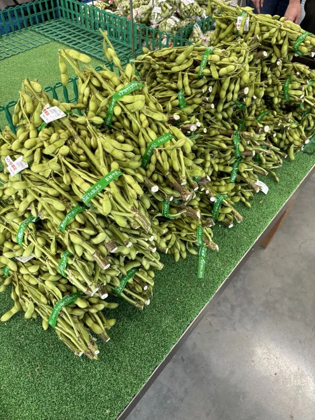 こちらも初夏の旬「枝豆のつかみ取り」チャレンジです!!枝付きの枝豆を片手でガバッと掴みまくってください!!