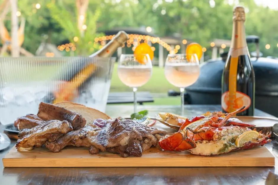 スモークチキンとローズマリー、グリルサーモンとオレンジマリネ、旬野菜のグリルとタイムなど、お好きなBBQ食材と「シャンドン ガーデン スプリッツ」を組み合わせたペアリングメニューをご用意しました。柑橘やハーブの香りが引き立つ一杯をお楽しみください。